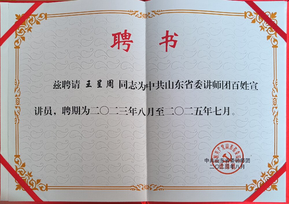 聚祥科技集團(tuán)——王呈周受聘山東省委講師團(tuán)百姓宣講員